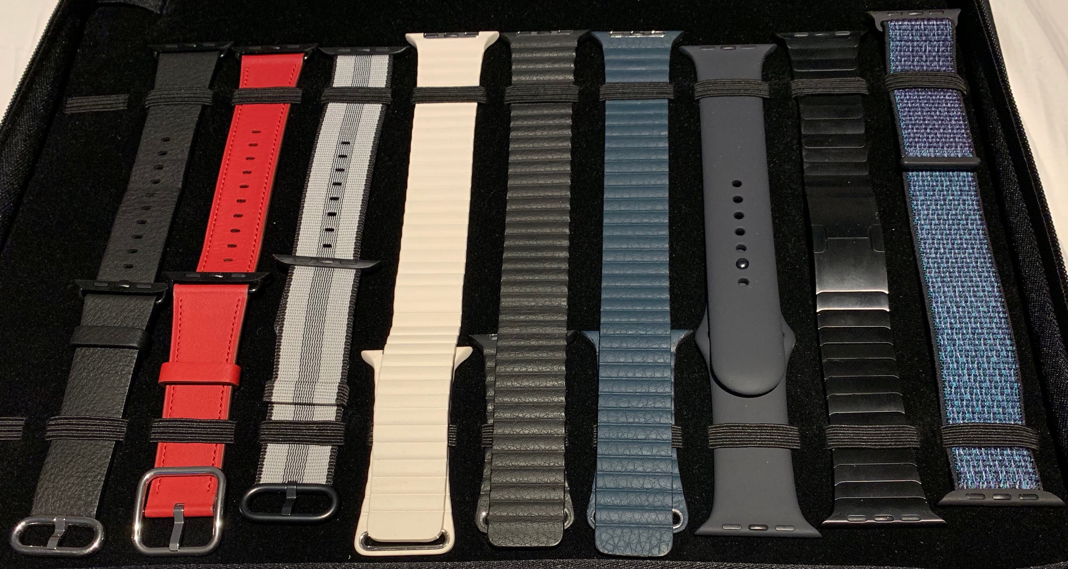 Here are my Apple Sport Loops, a couple of Leather Loops, a Classic Buckle, and Milanese Loop: