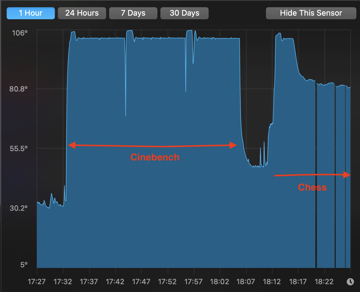 Not sure I understand all that but I am basically reassured that my occasional use of the chess engine does not result in non-stop 105C CPU, so not pursuing laptop coolers.