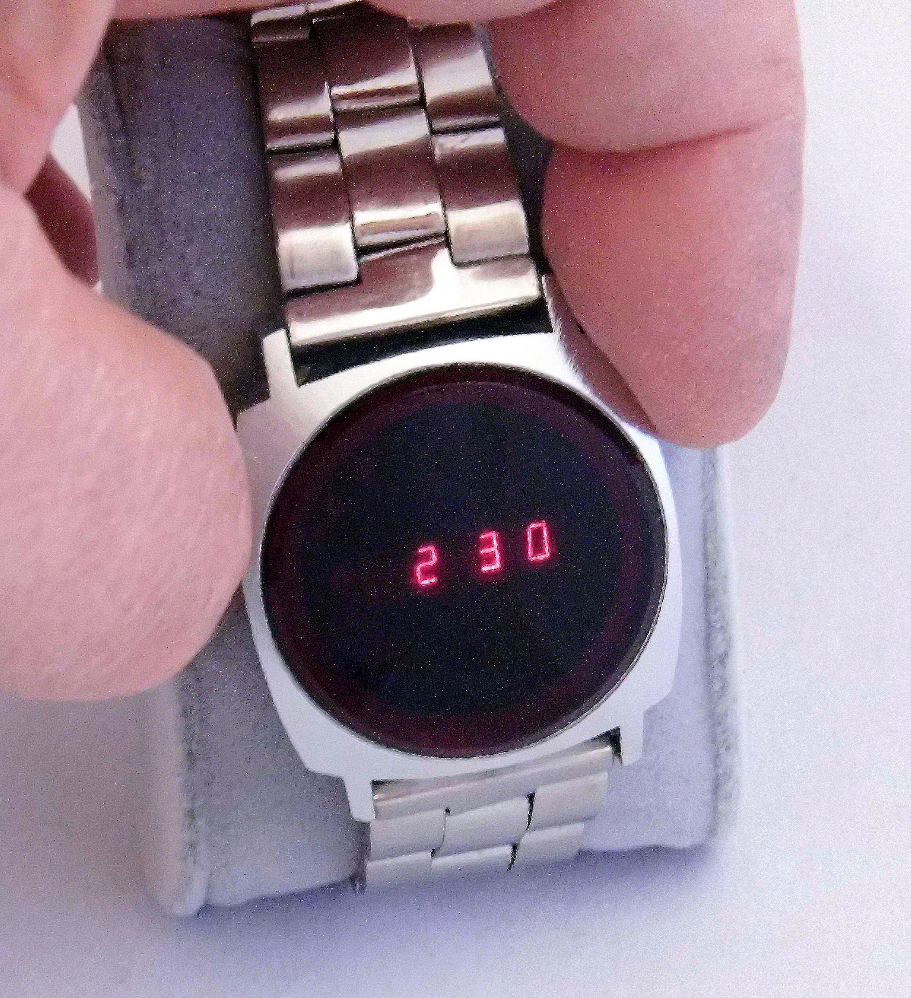 I have always liked the shape, and even the blank-when-inactive display, of the Apple Watch because it reminded me of the Pulsar LED watch my father wore when I was a kid. My father passed away in 1989, and one of the memories I have of him is this really cool digital LED watch that the Hamilton watch company marketed as the first "Time Computer." This was cutting edge wearable technology in the early 1970's and Roger Moore wore one as James Bond for a scene in Live and Let Die. This particular watch is 14k gold and my mother said she made payments on it for a long time without my dad knowing about the gift she was paying off. He had admired the watch at a local jeweler and my mother decided to surprise him with one. This Christmas my mother gave his watch to me. They no longer make batteries for this model, but there is a website that sells kits to adapt the closest modern size. I could give it a try to see if it still works, but then again I'm happy to wear it or hold onto it as a nonfunctional piece of jewelry. I can still see the bright red LED time displayed in my head whenever I press the buttons.