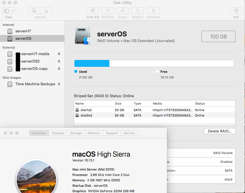 While upgrading my Mac Mini Server/RAID-0, I encountered the High Sierra installer message: "You may not install to this volume because it is part of a AppleRAID.". As well, a OWC Guardian Maximus/2x 4TB/RAID-1 is attached providing a bootable backup for the RAID-0. High Sierra is successfully running on RAID-0, my process: