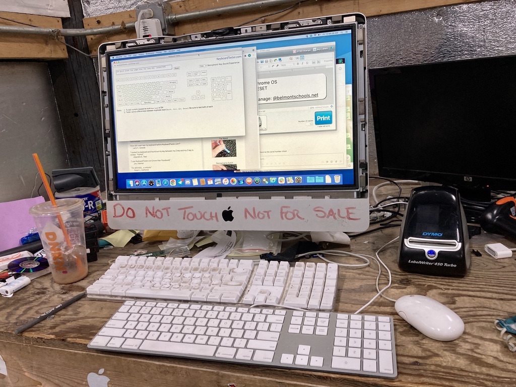 ...marked the first time I removed a glass front panel off an iMac. To be specific, it's this 20" early 2009 iMac. Using those suction tools made taking the pane; off and putting it back on WAY easier than I thought, especially since it's got magnets under the bezel. This model they wanted me to take a hard drive out of, only we didn't know until actually opening it that it already had the hard drive removed! So I put it back together and we listed it online without a hard drive. (My boss's father used it for a while, and I had installed Mac OS El Capitan for him to use on it then.