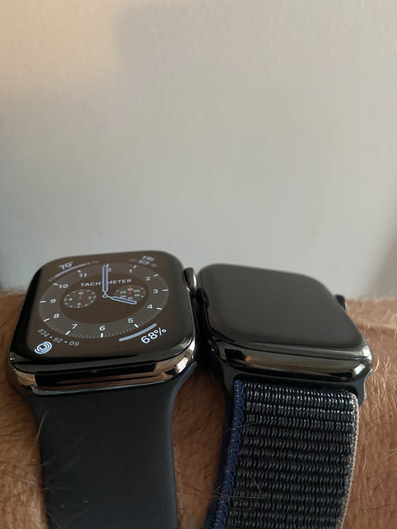 I brought the 44mm graphite today and coming from stainless silver since series 1 it’s a nice change, honestly it’s such a nice colour; I never liked the space black stainless steel so always went for silver but this one has the same look as the space grey iphone side and even with a silver link bracelet it looks so much nicer and posh looking, also the bezels don’t stand out as much, here are some pics