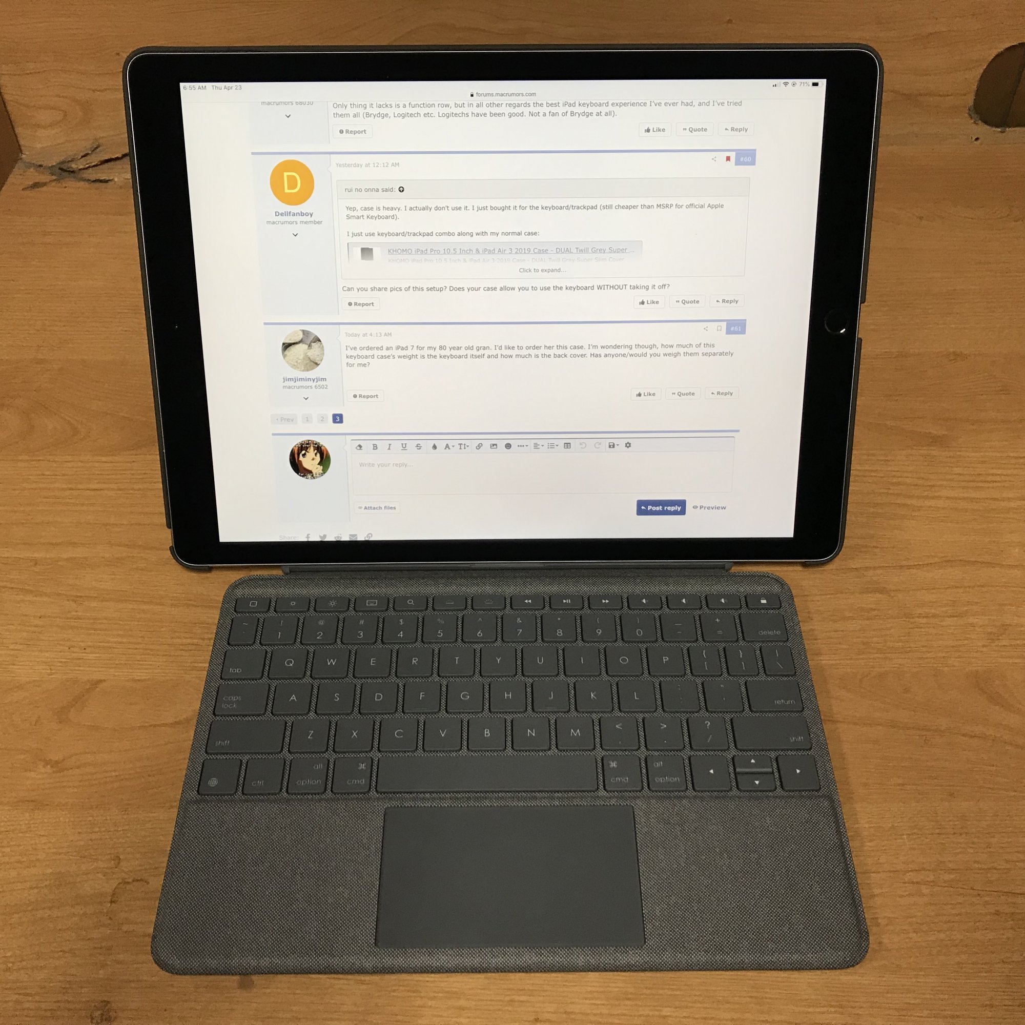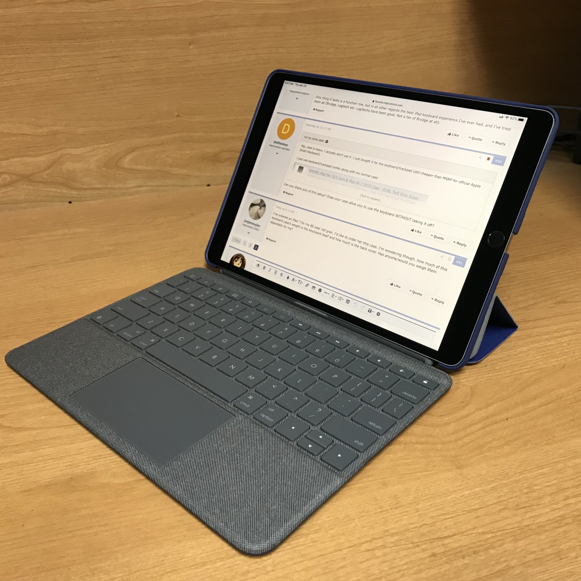 All in all, especially considering the price difference, if Logitech made a combo touch keyboard for the 11” pro, I’d probably go with that. But, I really like having the keyboard/trackpad attachment, turns the iPad into mini (but heavy) laptop.