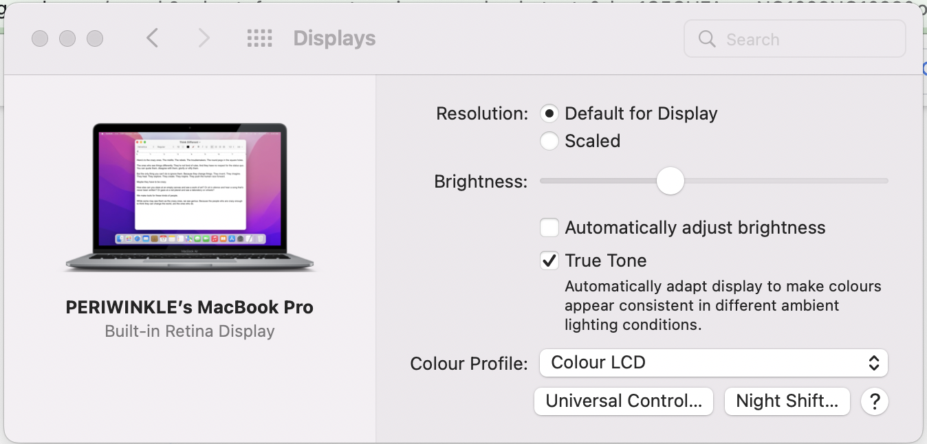 MacBook Pro, MacOs Monterey 12.6 (21G115). I cannot connect my Macbook wirelessly to a Smart TV, I have looked everywhere and there is no option for that. Please help suggest a solution or a patch or a 3rd party app that can help me project wirelessly to Smart TV's. I attached pictures, normal Macbook on left. My Macbook on the right.