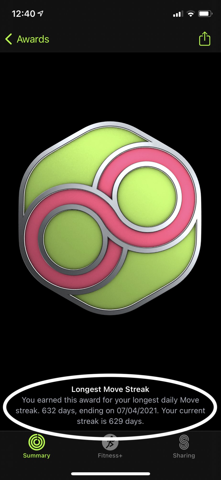 I'm temporarily using a Series 3 while my Series 0 is away for battery service. I used both day before yesterday (paired simultaneously) and both gave me the same Longest Move Streak badge. Yesterday I unpaired my Series 0 and sent it to Apple. Later after meeting my Move goal, I was expecting another Longest Move Streak badge. But I didn't get one. When I looked in Fitness it showed the badge from the previous day (632 day) and said that the current Move streak was 629 days. This doesn't make any sense.