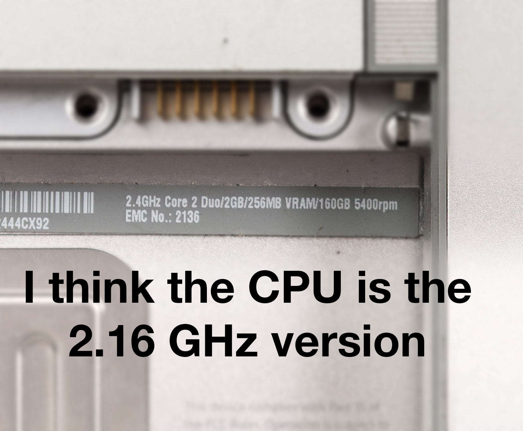 I bought this 2.16 GHz MacBook Pro about two months ago. It's in pretty nice shape. It has a slight dent on the top, and a glossy screen that's very pretty. I put a mechanical 1TB drive in it, and put a fresh install of Snow Leopard & Vista on it. Recently I bought ExpressCards for eSata & reading SD cards.