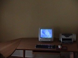 Here is how the setup originally looked. Notice the naked plaster wall behind the computer.