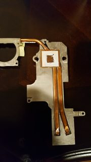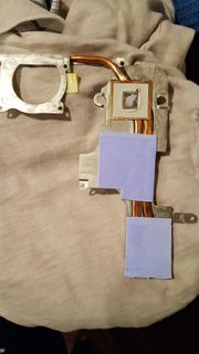 So my original plan was to apply thermal paste on all 3 chips. However after opening up the heatsink I had to change my plan for several reasons. First the exposed heatpipes would mean I would need to use a lot of thermal paste to remove the air bubbles. Second, the nvidia gpu was partially covered by the laptop's internal frame. If I had to reapply thermal paste it would be very difficult to clean up the gpu without having to remove the entire frame. And most importantly, the frame forced a gap between the heatsink and the big-chip and gpu. This isn't an issue for a thermal pad since it's thick enough to easily bridge the two. But a thermal paste is only supposed to be a thin spread. It's not meant to fill 1.5 mm gaps!