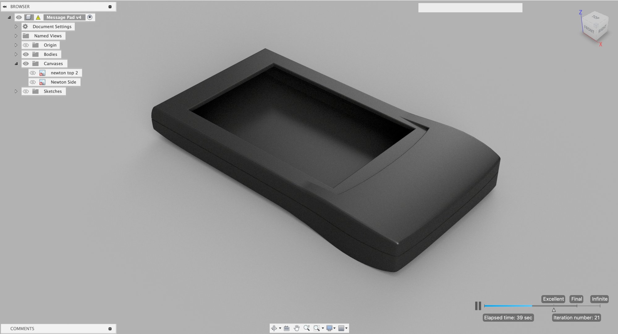 So, in celebration of me finding the MP 110 I bought at a swap meet 20 years ago in the bottom of a desk drawer (and coincidentally the 30th Anniversary of this design), I've set out to reverse model the shape/case of the Newton to recreate and fill it with modern tech. I've never done anything like this, and I have no idea if I'll ultimately succeed, so here goes nothing...