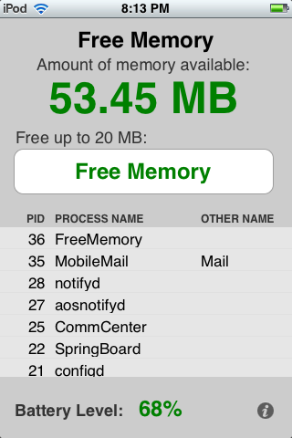 Mmm.. Seems that I have more memory available than you on a Jailbroken 3G :eek:
