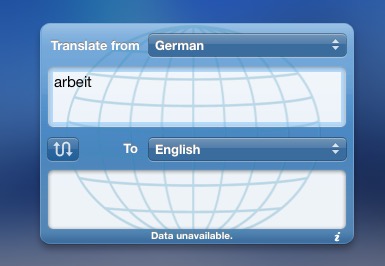 I noticed that a few days ago when I typed something into my translation widget I get a message that "data unavailable'. I check today on my other computer and get the same message. I tried one of the plist deletion methods and it did create a new one but still the same. I checked other widgets and it seems like any widget that needs to pull information from the internet (a server maybe) stopped working. Is this an Apple thing where they try to make you fix things with an upgrade? Has anybody got this thing to work?