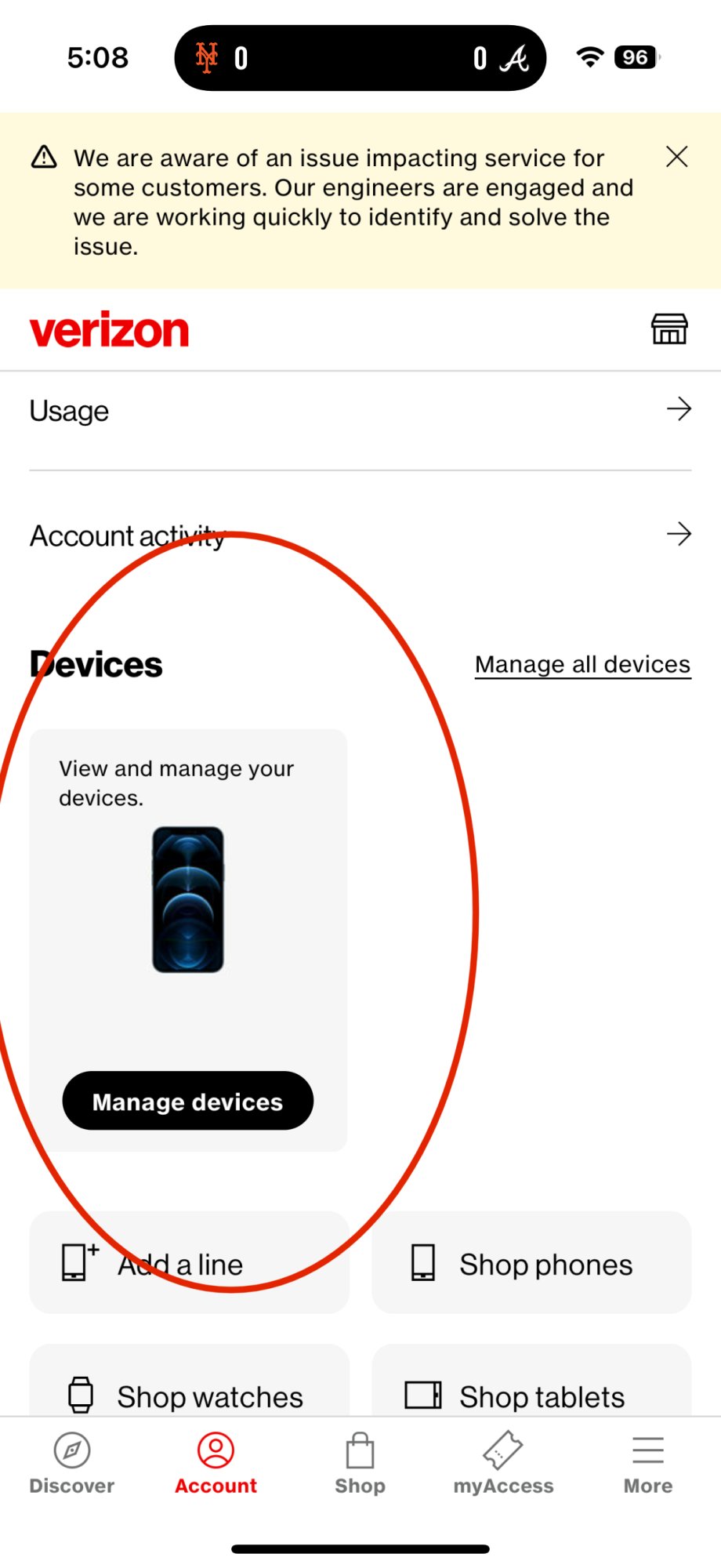 Usually on the My Verizon app I see little thumbnails of my devices when I sign in and click the account button on the bottom. Now I’m just getting a generic manage my devices. Can someone sign in and see if they are having the same issue? Thank you