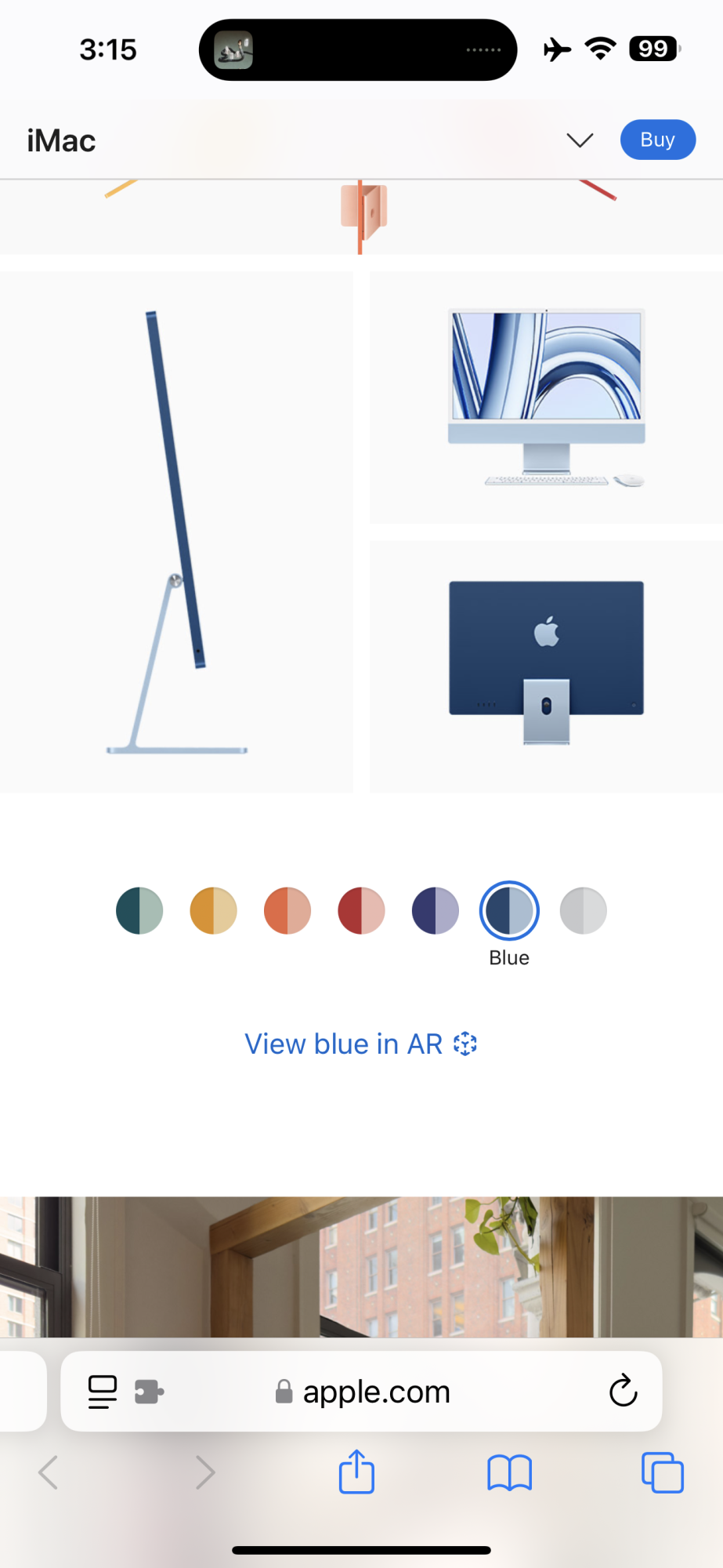 You can use the View (color) In AR if you peruse the iMac on the iOS Store app...I did that to place my three favorite colors into my office to play with....its great. in my example green looks best.