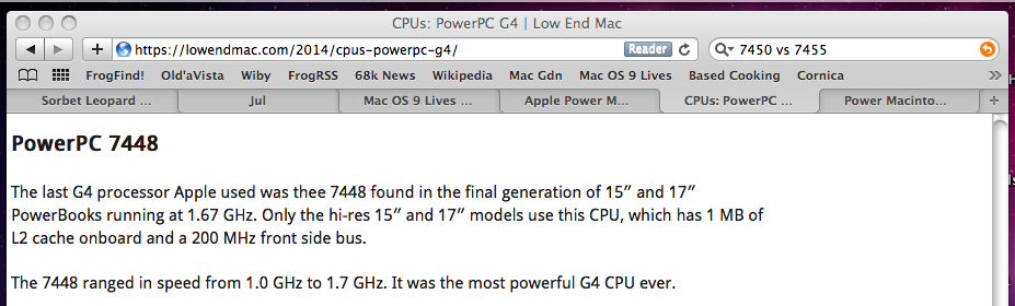 I was thinking, maybe we could post here the myths about certain PowerPC Mac models we consistently and frustratingly run across all the time. Of course this would include the typical myths of "You can't do X" with PowerPC Macs, but I want to include stuff that we've all encountered from time to time with our various models. Stuff other people say to you or that you've observed somewhere, things like that.