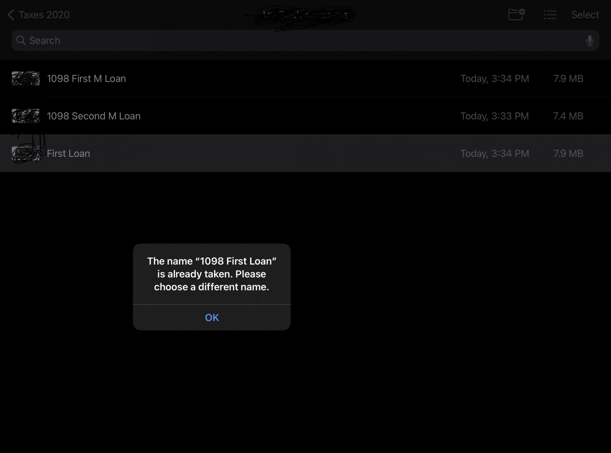 I scanned a document via Files into iCloud drive and saved it. Renamed it 1098 First Loan. The file vanishes for some reason.