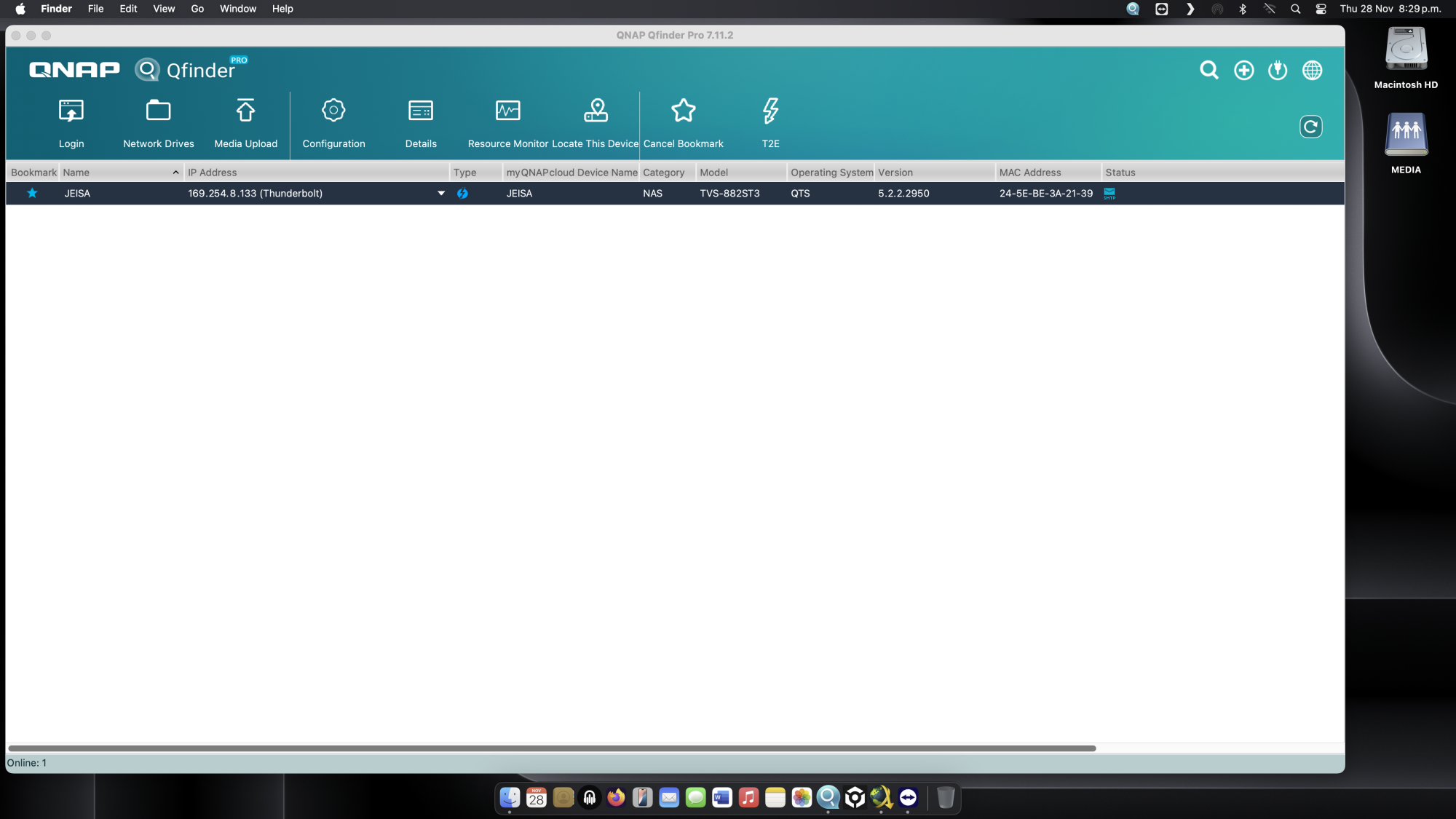 I have a QNAP NAS TVS-882ST3 with the latest firmware v.5.1.9.2954 connected via ethernet to my router and directly connected via thunderbolt 3 from the NAS to my Mac Mini (2024).