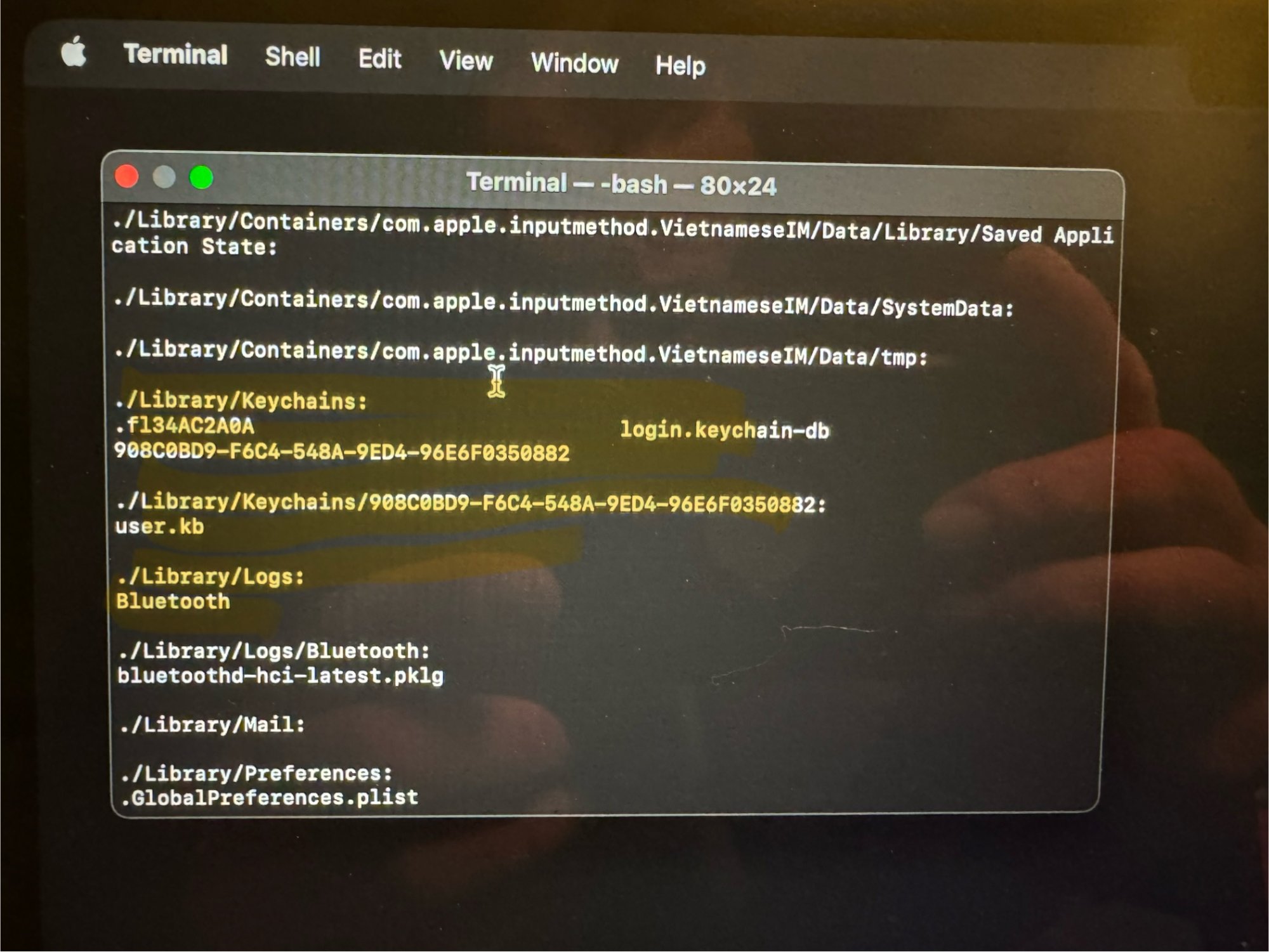 Please no “reset to factory” canned responses this in regards to a persistent malware that remains after factory reset, reformat, etc. These photos are with no OS installed, they are taken after disk utility has erased the disc from terminal in the recovery environment. Running the command “ls -R these are the files that remain in particular the issue I’m having is the keychain please do not assume that’s a new keychain there’s no OS installed that is not a new keychain you’re seeing a keychain that I’ve had since my original Apple ID an actual ME account and I’m desperately wanting a fresh clean keychain. I cannot shake this monkey loose and it contains Kerberos single signon tokens and rsa keys. These are private devices that have never been managed by choice or used with any enterprise or business. I understand these are legitimate apple processes yet being used nefariously, and I’m looking for some guidance