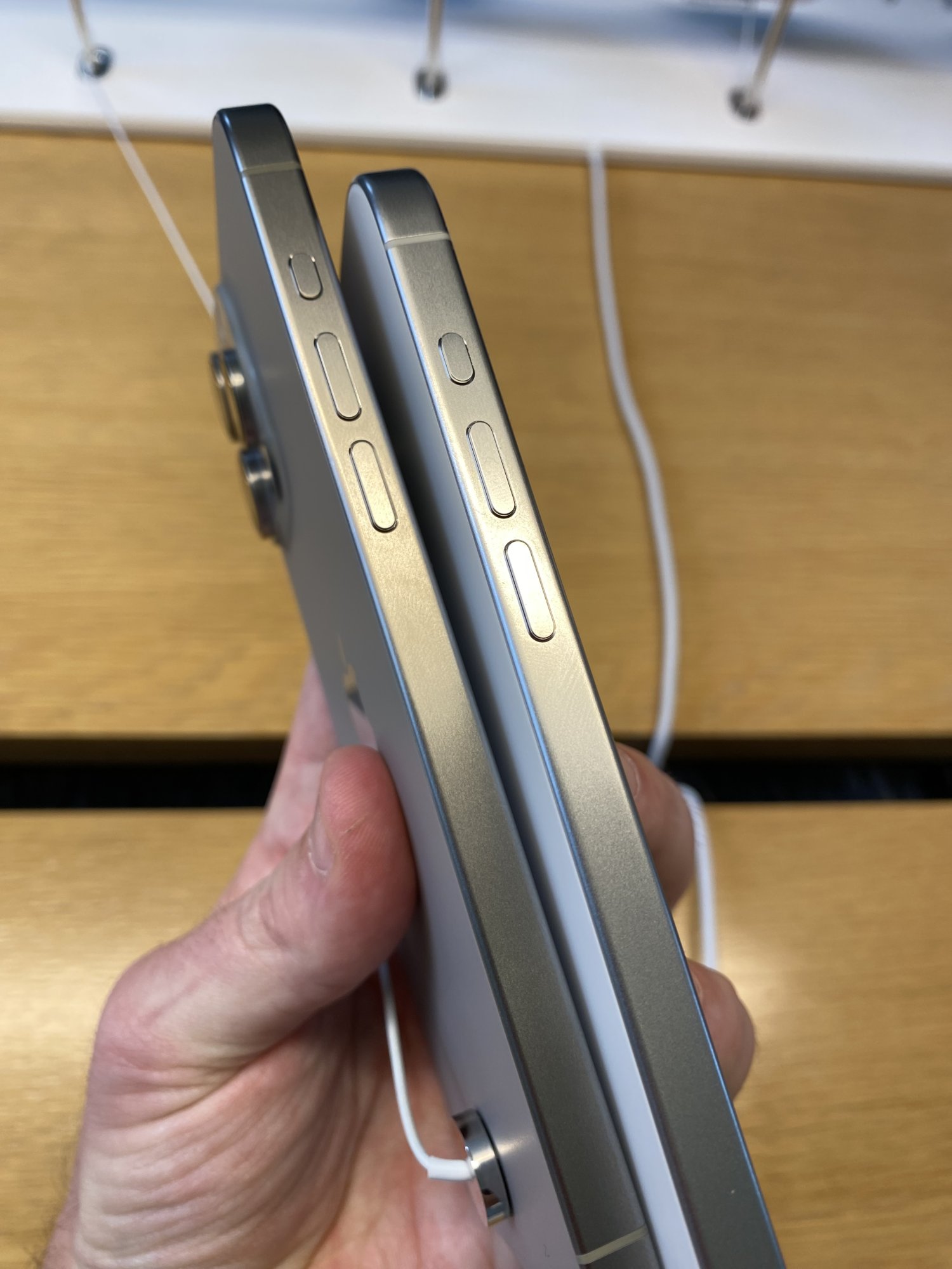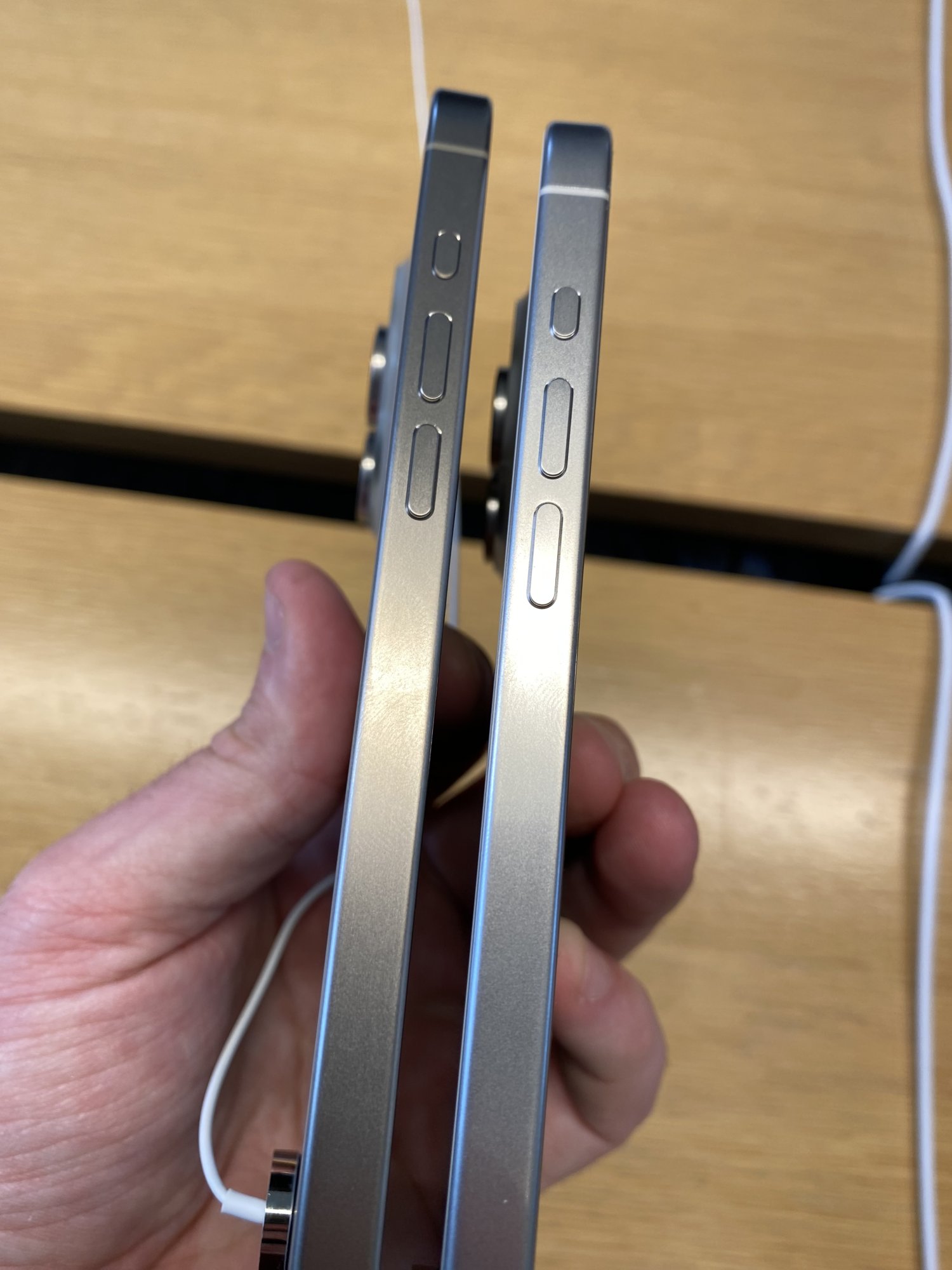 Is the color of the frame (the metal band on the sides of the phone) on the Natural Titanium model the same color as the frame on the White Titanium model?