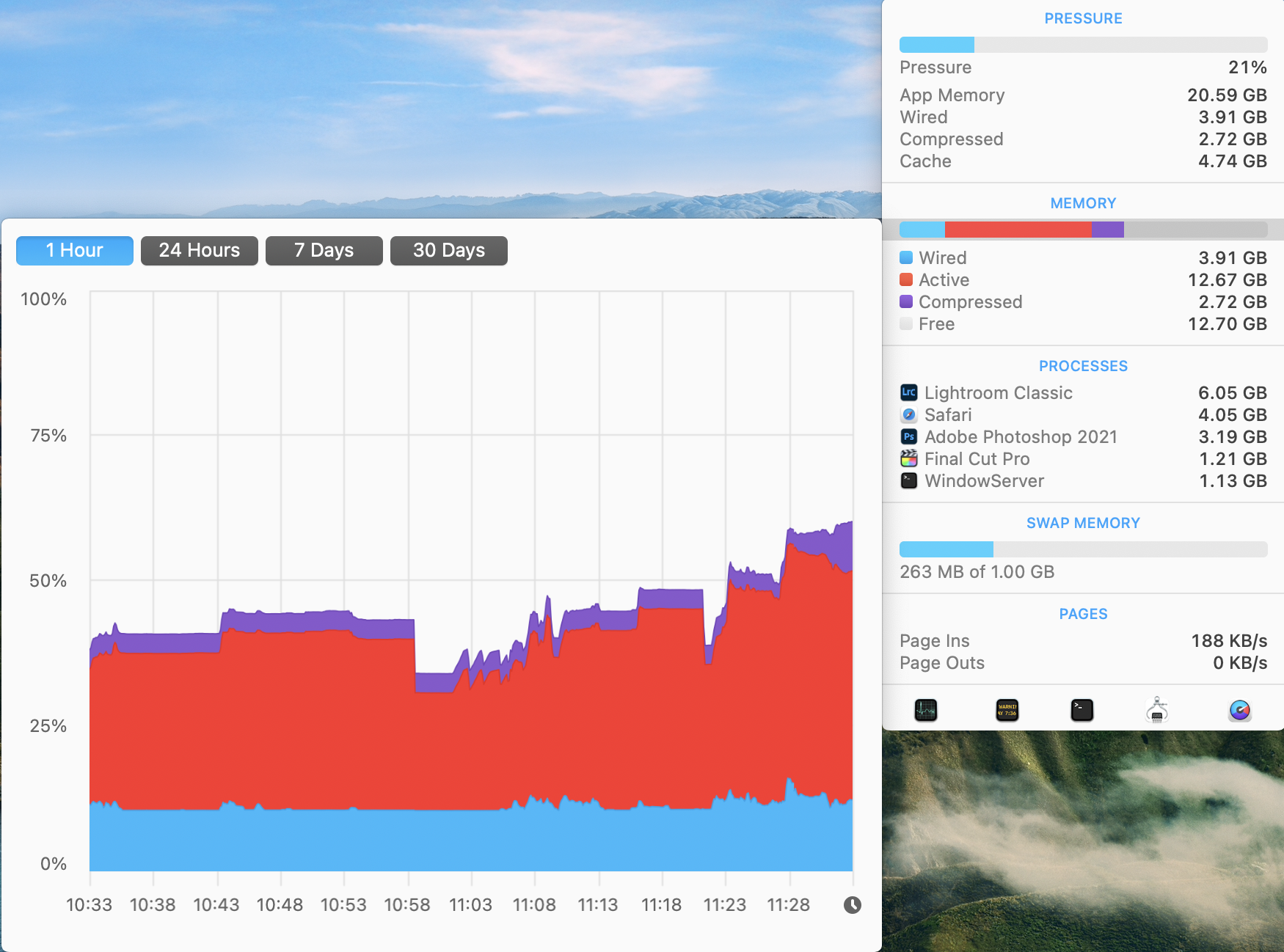 Struggling a bit with this too. When I bought my 2019 i9, I initially went for 16gb, then reversed myself and sent it back for a 32gb. But I get the impression that I never even come close to fully utilizing that RAM. Here's a chart of my past 30 days of RAM usage: