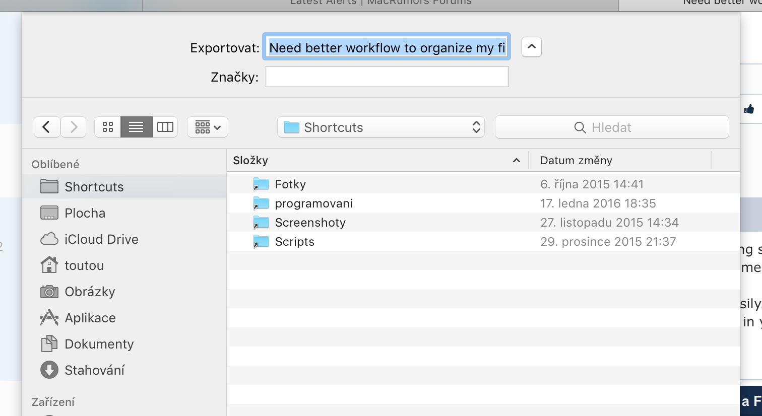 The above structure works very well for most things, because it is so organized. However, where it becomes a problem is when I have some directory or file that I need to access regularly that is nested 5-7 layers deep. It is a pain having to navigate endlessly in Finder or navigating in the File > Open/Save As box when I am working with files.