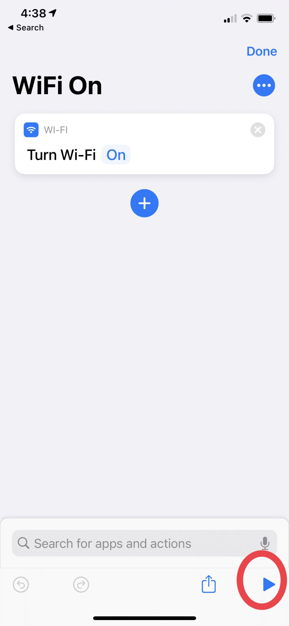 4 - Clicked the 3 button icon and typed "WiFi" in the shortcut name field