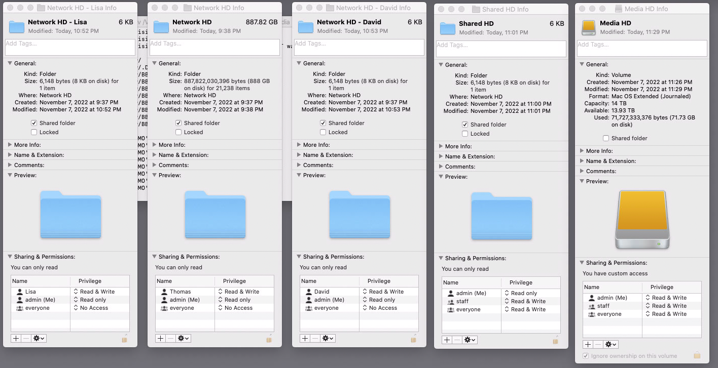 As you can see from these screen shots, Lisa should only have access to her own Network HD folder, and only have read/write access to it.
