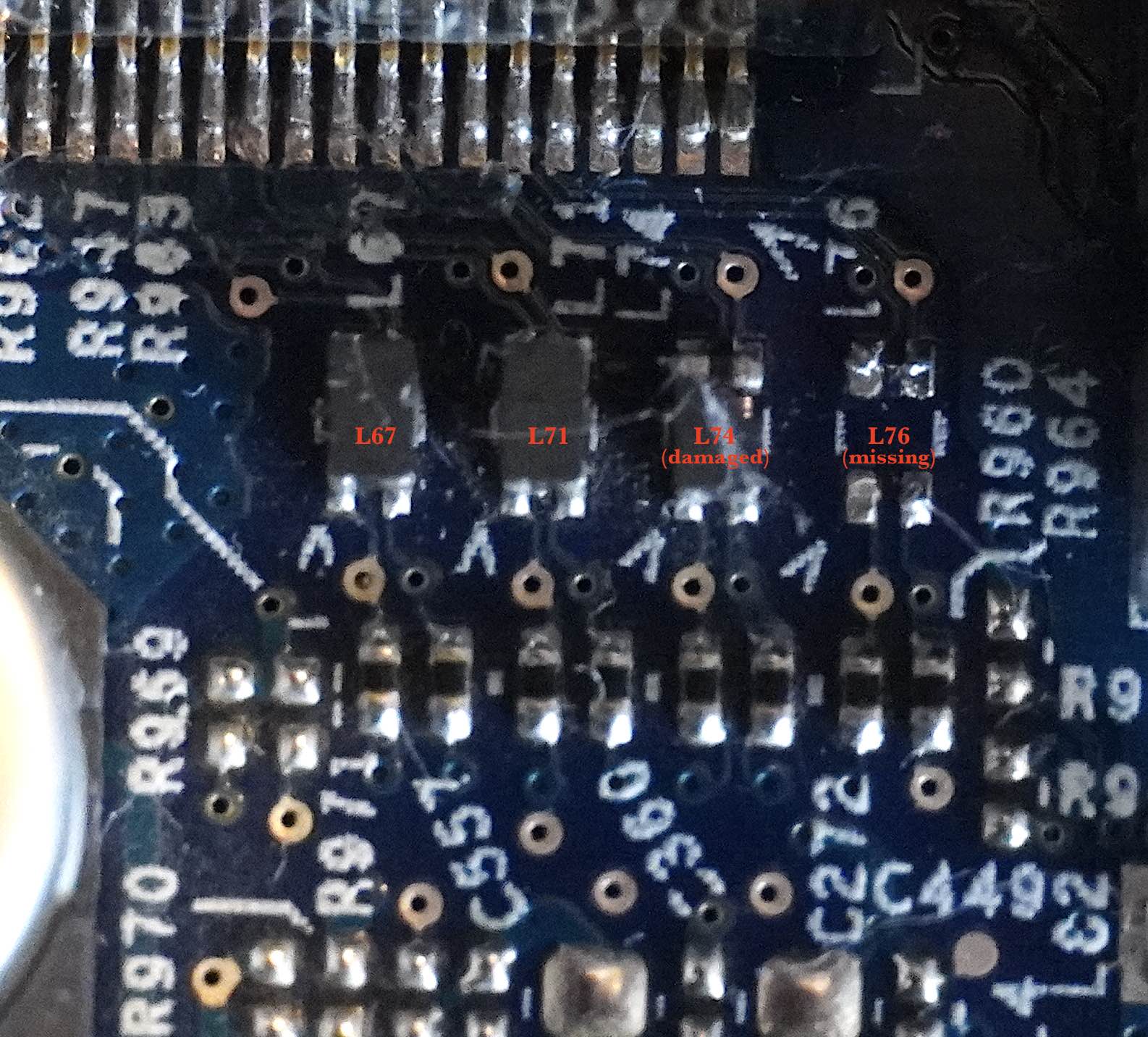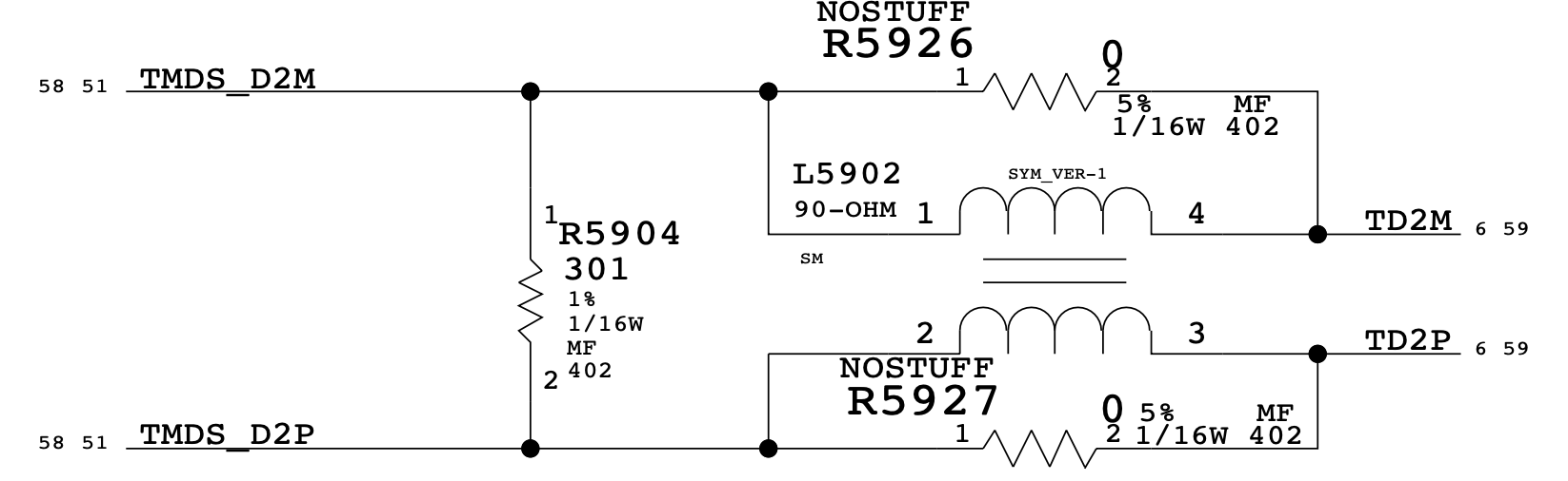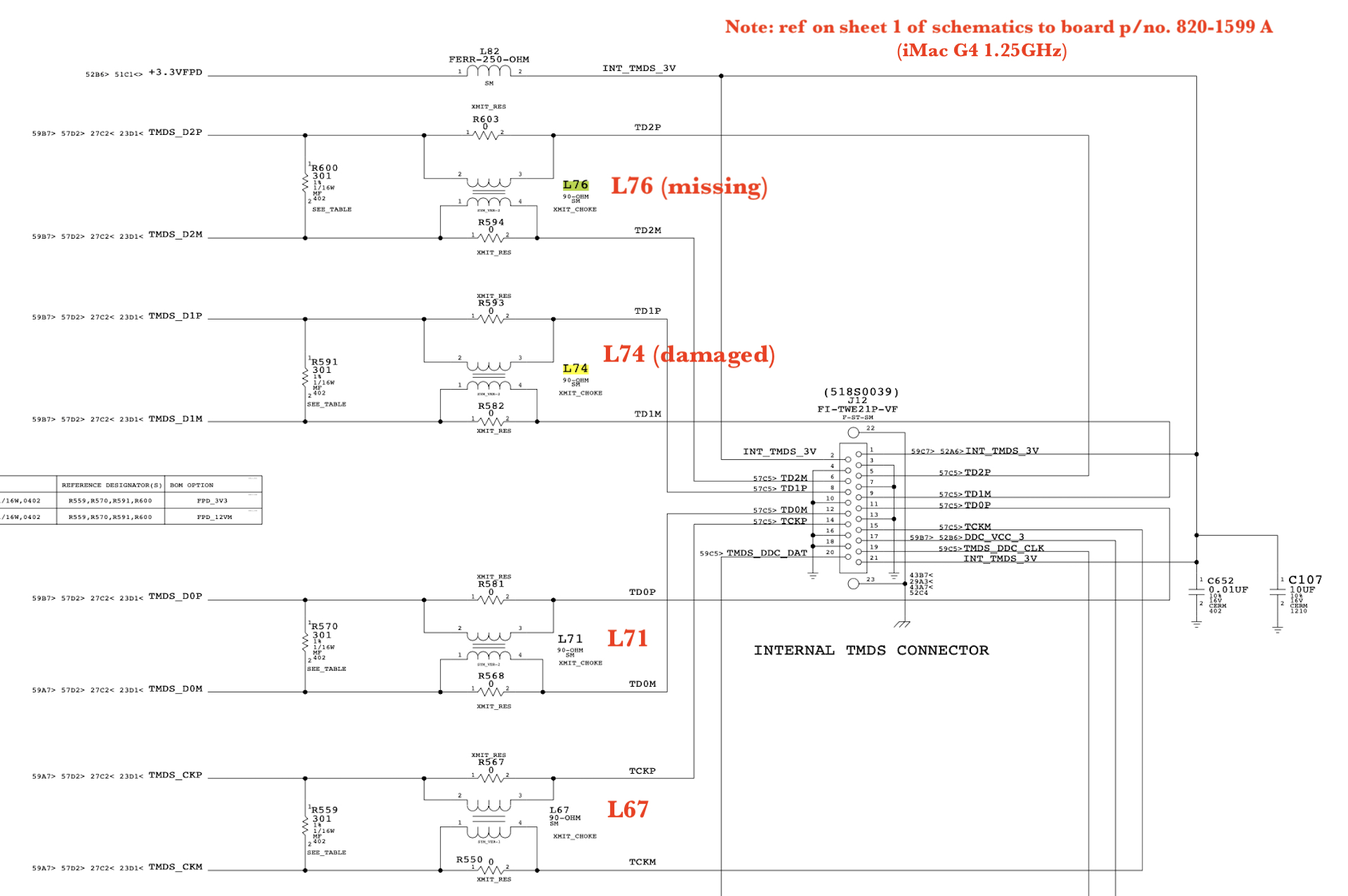 Alternatively, if you have any dead iMac G5 motherboards, they seem to have the same 90-Ohm chokes on their internal TMDS connector, so you could harvest spares from there as well (I checked this on an 820-1540 schematic, but I'm pretty confident they'll all be the same).