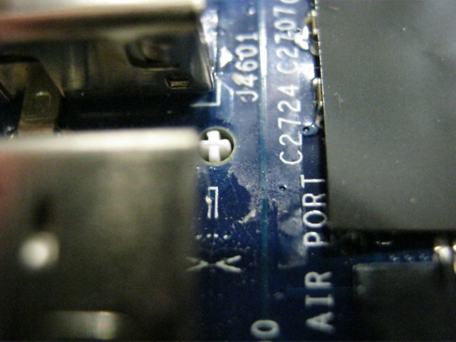 Ok, quick facts and will answer questions if I miss anything. In Laws asked me to look at their Macbook, I work on PC's mainly so took into apple to have them look it over. Told it needed to be sent off to the depot. Had them pop the case and verify no water damage, the girl came back told me there was no sign of water damage and that it would be a flat rate of 280. So I gave them the go ahead to send it off. Get a call 6 days later that they found microscopic corrosion and that this shows water/liquid damage, but there were no signs of water/liquid damage on the case or metal inside the laptop, I asked for a pic to be sent to see what they are talking about. So tell me, do you see any corrosion in this pic, and how should I go from here, the price told to me was 755, I so far have them down to 430, and they are holding firm there.