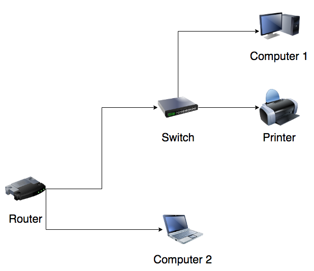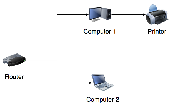 We have two computers (both Macs running OSX 10.9.5) and a multi-function printer (Brother DCP-7065DN) which we want both computer to use. The problem is that we only have two Ethernet connections available, so currently the printer is hooked up via USB to one of the Macs which the other one accesses via OSX's "printer sharing" feature. This works fine except for when the printer-attached Mac is turned off.