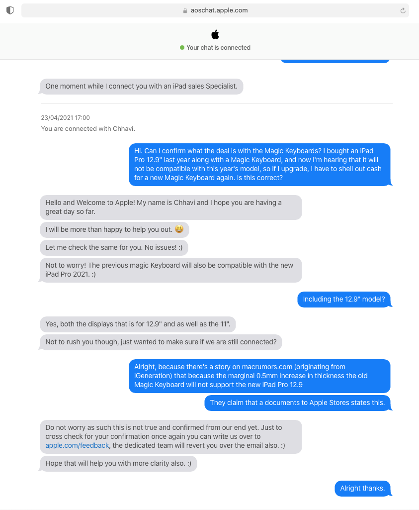 Apologies if someone made a similar point earlier in the thread as I haven’t read past the first few posts. I’m calling ******** on this from Apple. I admit this is only a rough approximation but I just laid 5 sheets of 20# paper which are 0.004” thick (via caliper measurement) or just ever so slightly thicker than 0.1 mm, and had no issues with it closing flat on my 2018 iPad Pro 12.9 LTE model. Using 8 sheets resulted in only a very slight gap but nothing that would prevent me from using the keyboard. The weight of the iPad folding down on top keeps it firmly closed just as it normally would.