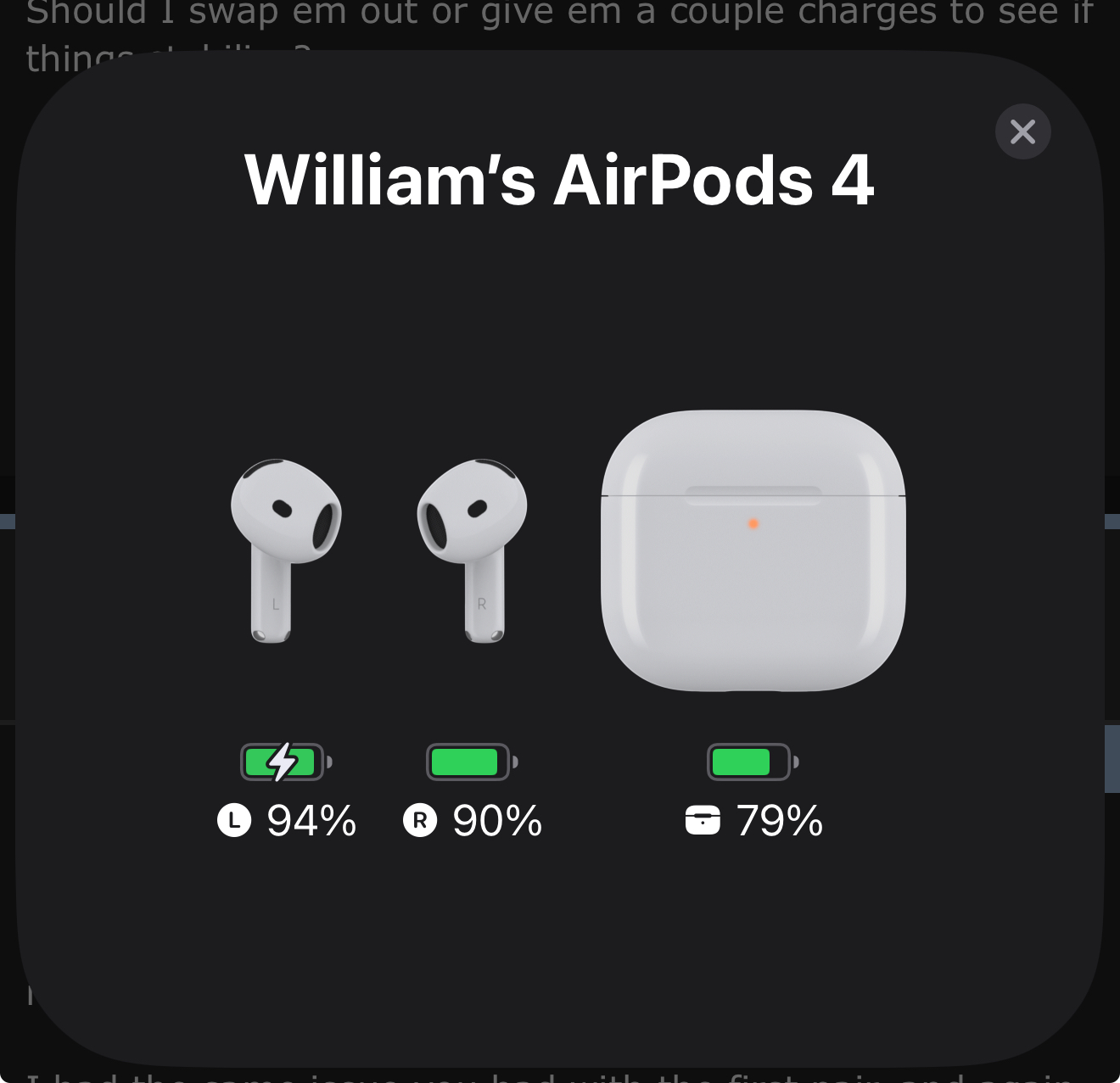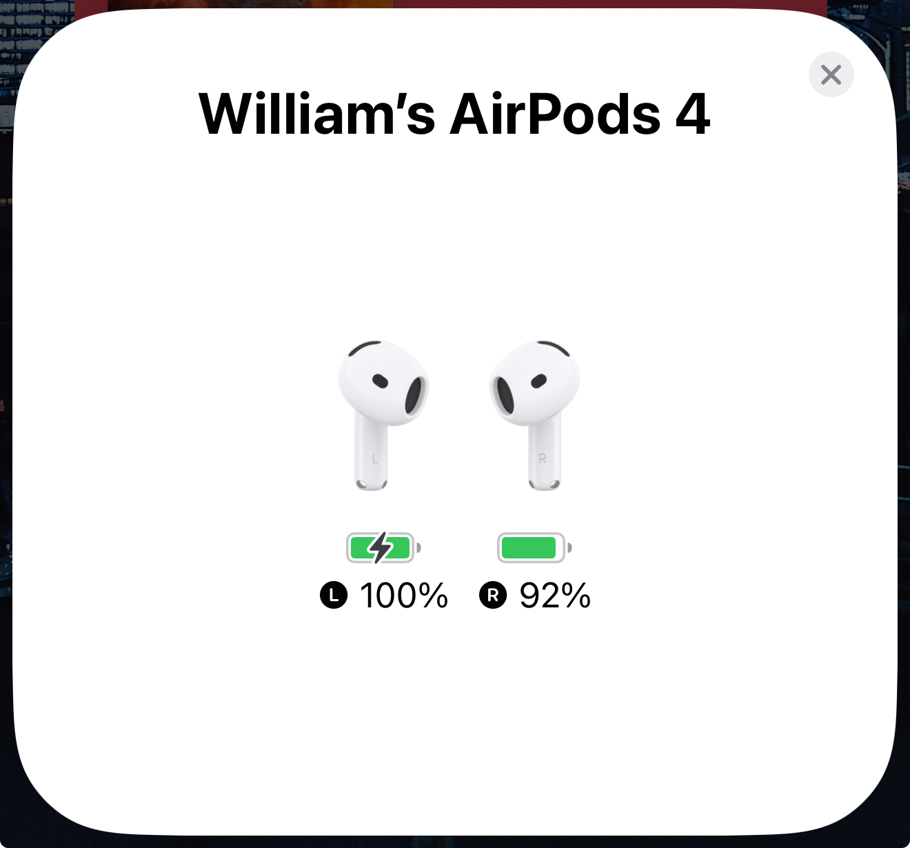 Strange. When I connect my AirPods 2, the widget shows two separate AirPod 2 icons. When I connect my AirPod 4, they show up like they’re over the head headphones. No AirPod icons or AirPod case? Makes no sense.