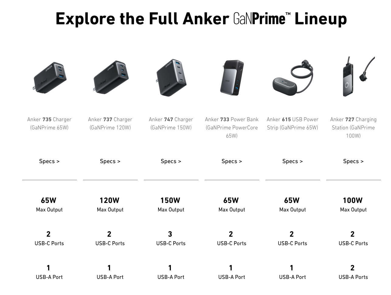 I have the 735 already but wanted to see if the 736 was on sale by chance and stumbled on the announcement. And now there is a 737 120w w/ 2 USB-c + 1 USB-a.