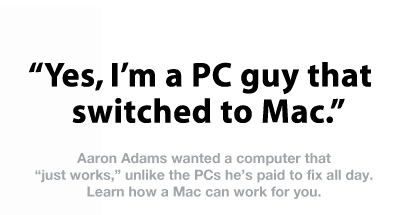 some of the people like Sarah Whistler never mention windoze in the whole thing, all she sais is she is glad that she switched from aq pc to a mac, and since PC isnt a regesterd trademark she isnt critisizing any other company. i suspect apple has more of this type for use overseas.Originally posted by Blackcat