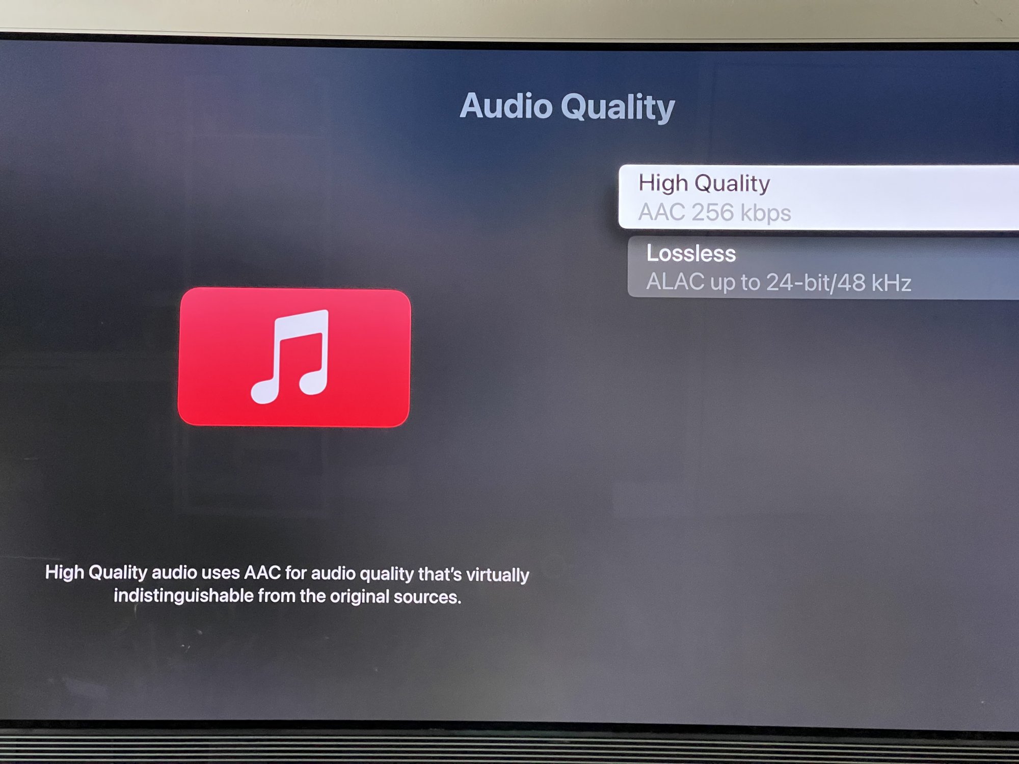 I am on official 14.6 and whenever I AirPlay this Hi-Res track to my aTV 4K, all indicators turn back to Lossless and 24/48. So I still have not managed to re-create this display.I’m not sure it’s a glitch, I’m on beta but you’ve always been able to Airplay audio to your TV, and since Hi Res lossless plays on the iPhone the UI is just showing you that that is what the phone is getting, but also that the highest you can get out of the TV is 24/48 when you go to the audio quality settings.