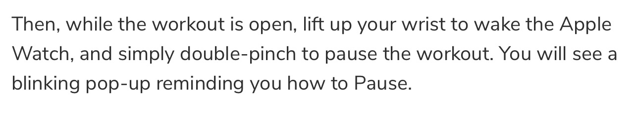 This is one difference between the new Ultra 2 and my Ultra 1 with the accessibility feature. I cannot pause a workout with a double pinch, but I can start it, and once I’ve paused it with the software button (or action button + side button), I can double pinch to resume it.Right. You have to raise the wrist to wake the watch.View attachment 2289972