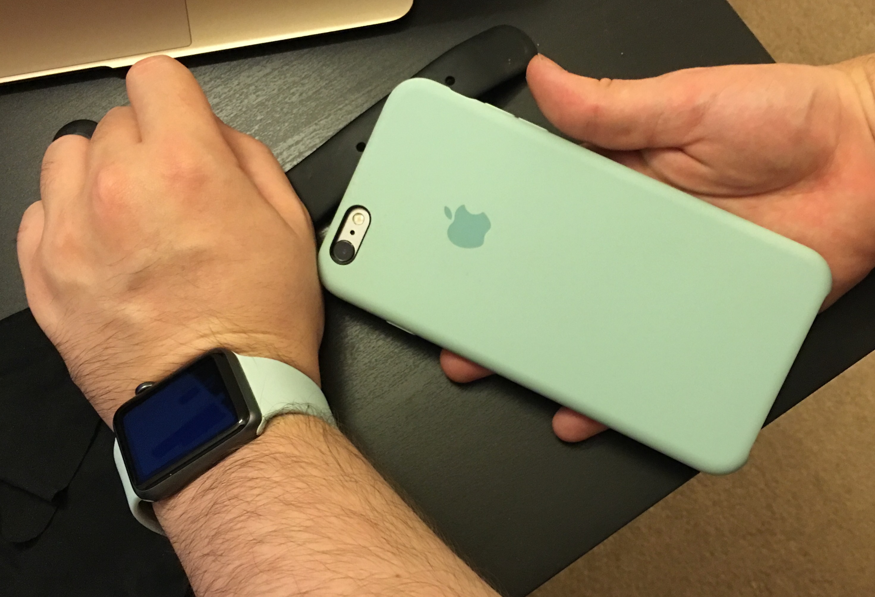 ...and next to the turquoise silicone case which colour matches almost perfectly.