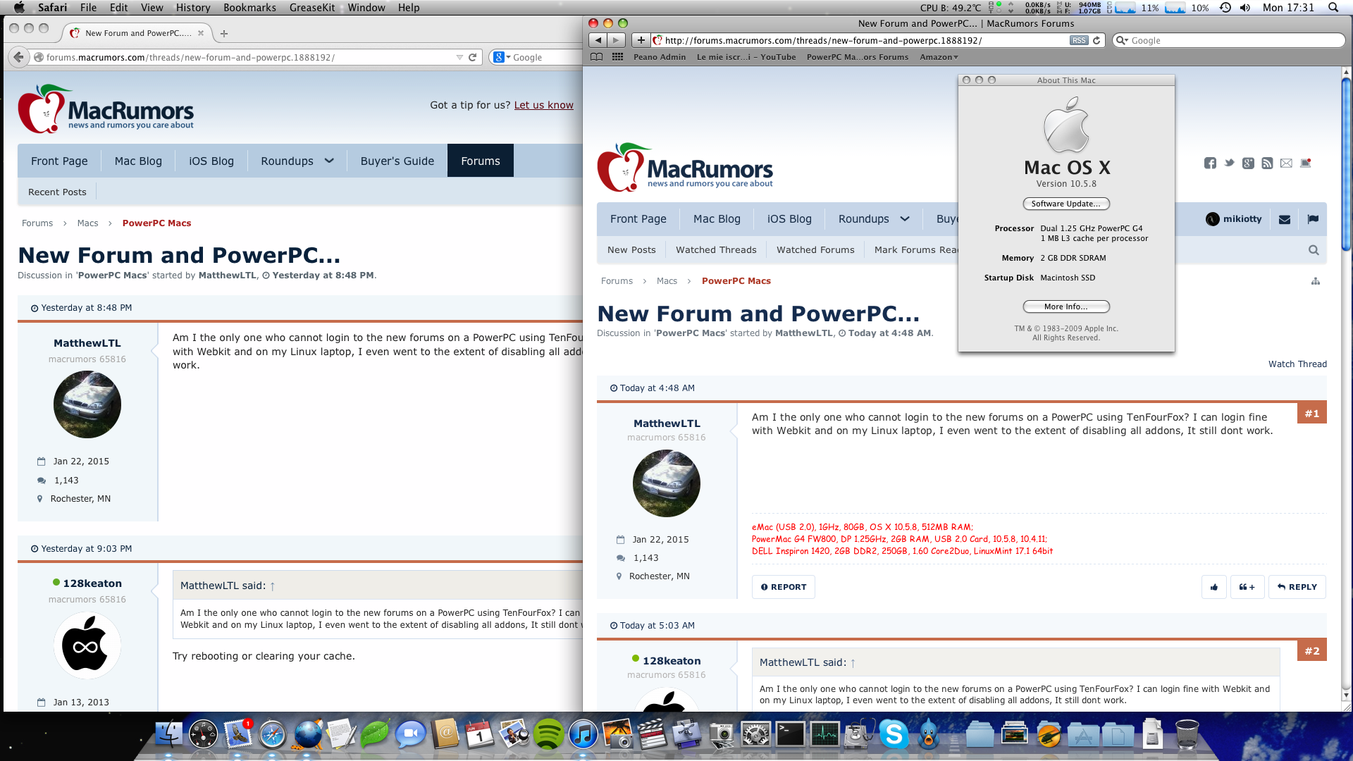 Am I the only one who cannot login to the new forums on a PowerPC using TenFourFox? I can login fine with Webkit and on my Linux laptop, I even went to the extent of disabling all addons, It still dont work.