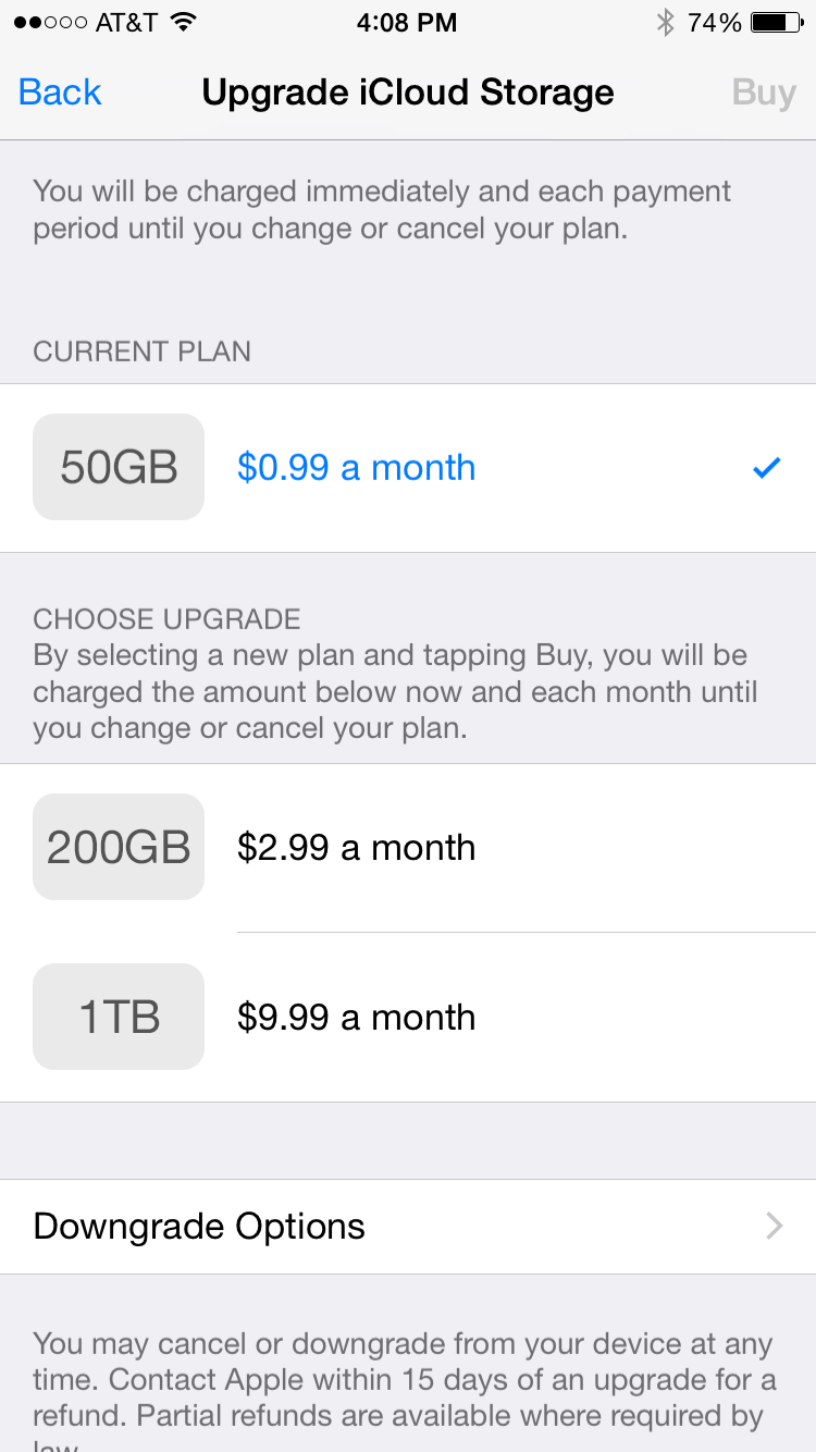 the 50GB plan now shows up as my current selection but it still reflects elsewhere I only have 20GG of total storage.
