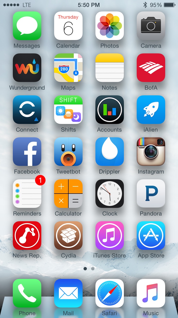 I miss iOS 6 now.It doesn’t matter what you do, you need a wallpaper with just the right colour balance to look good on iOS 7/8/9, either because the contrast is too poor, the Dock looks crappy, the colours conflict or the result looks too busy. Choosing your wallpaper is like fengshui’ing your living room, rather than just going with a wallpaper you like in and of itself.