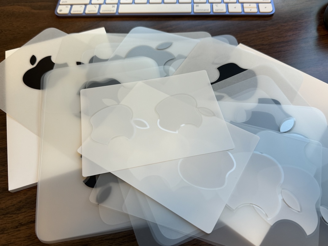 I used to save those stickers from all my Apple products in a separate bin. When selling/upgrading the Apple product, I wouldn't include the stickers with the old one and instead keep it for myself. I had several dozen different stickers. White ones, several colorful ones from the iPod Nano chromatic lineup, big ones from a Mac, small ones from an iPhone, black ones, gold ones, silver ones, on and on.