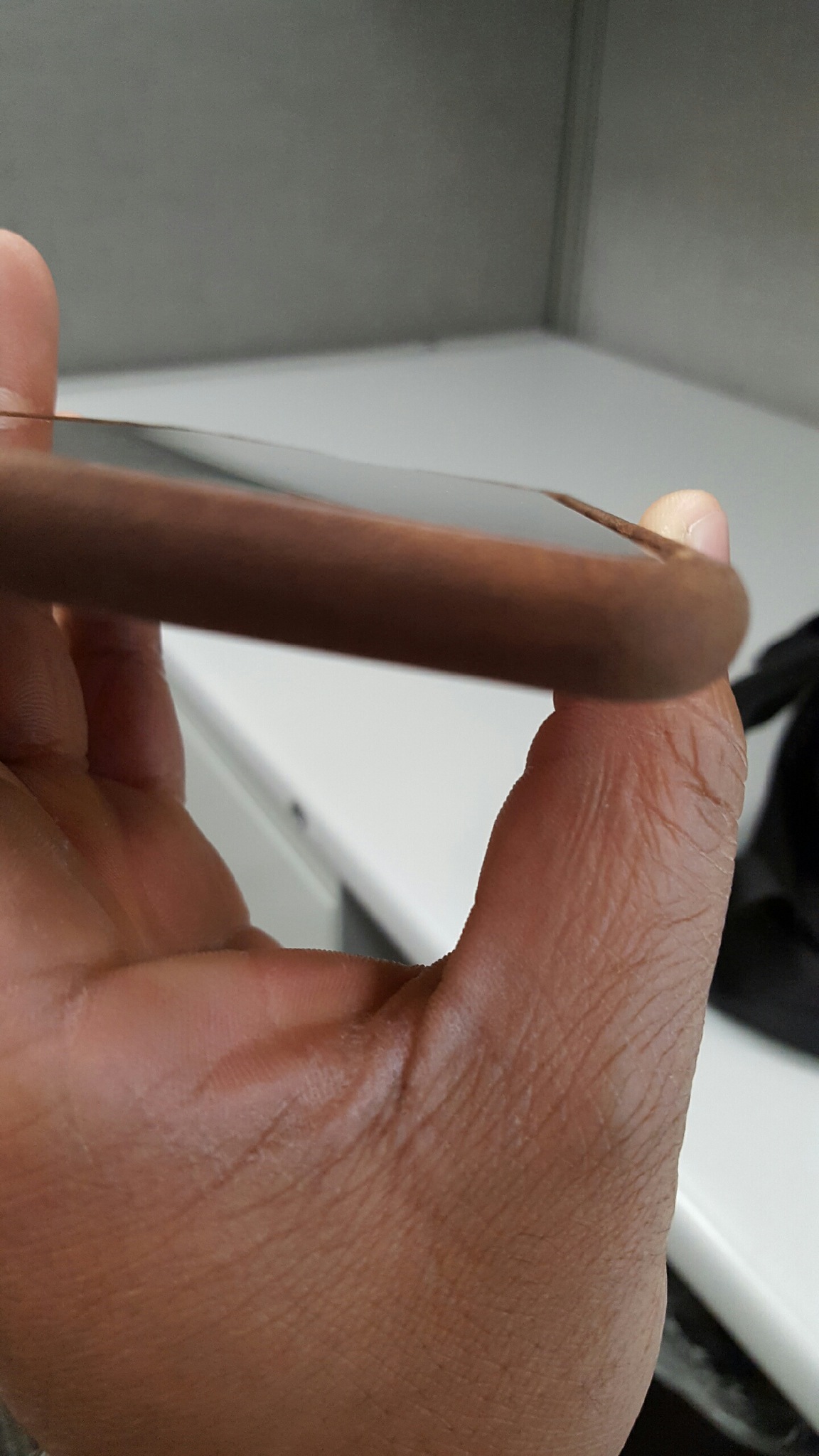 Well that didn't take long. After flipping the silent switch on and off a few times over the past 12 hours (most of which was spent sleeping), the leather has started to come unglued. My fingernail must have snagged it in one of my attempts to reach the switch. I guess I'll return it and just go caseless until I can get a used Apple leather case on eBay.