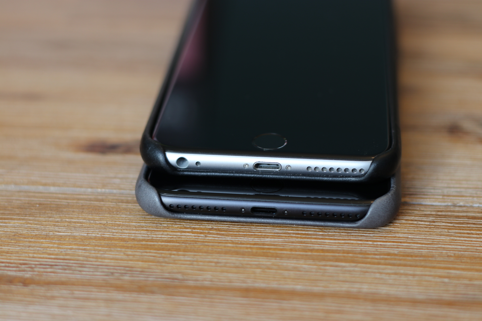 Few pics of my (matte) black 7 Plus in Storm Gray case compared to my Space Gray 6s Plus in the black leather case. I've picked the black leather for the past 2 years so I was looking forward to the new color option and I definitely like it. I also appreciate the addition of physical buttons this year. Upon taking pictures I realized that the colors are basically inversed/inverted this time around with my choices. Black case with a gray phone and then a gray case with a black phone.