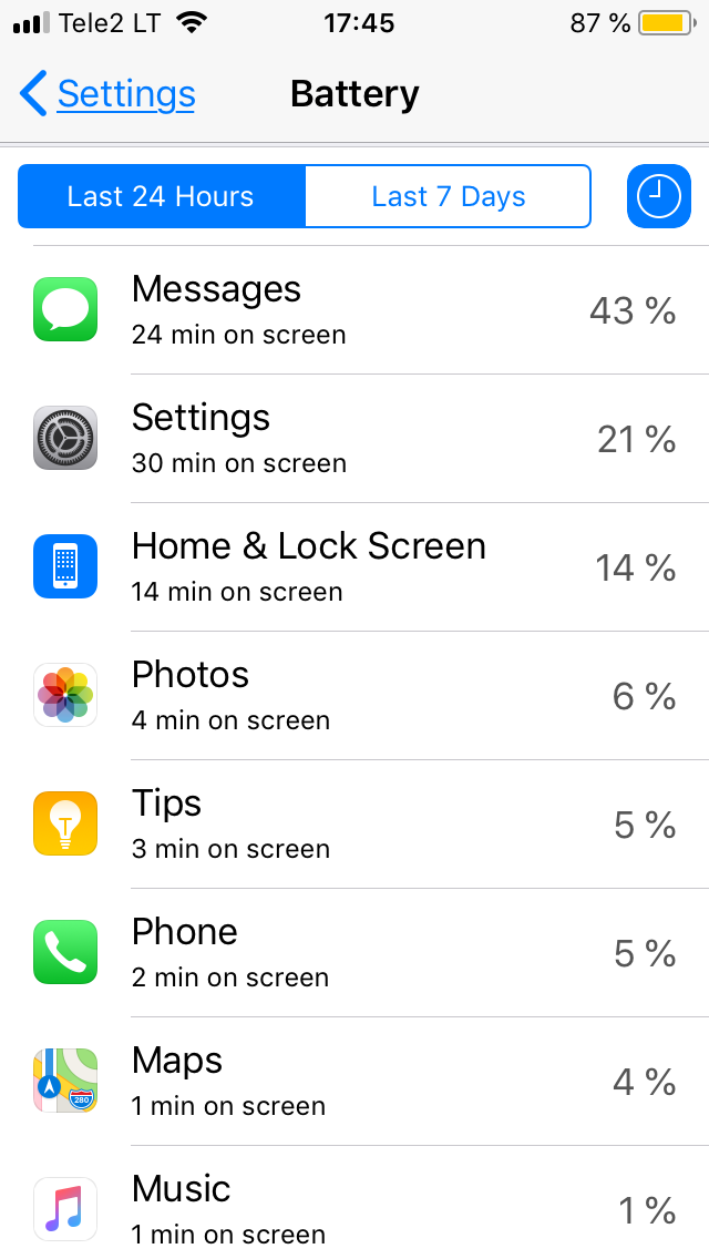 per half an hour of usage. I then quitted these apps except of Messages. The percentage on the screenshot is by the time I closed other apps and also disabled Location Tracking while using the phone. What is striking about these statistics is that Messages contributes most to the draining. I feel unrest. How do you do without the most actively used app? That's insane.