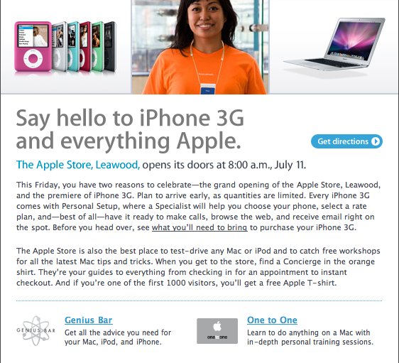 The furniture store is Crate & Barrel. The mac store is going in right behind it should be easily visible from Roe or 119th street because of the massive apple.