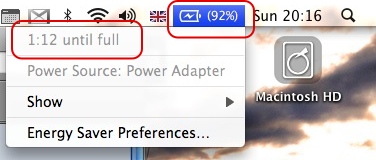 For example: just web browsing on Wi-Fi (CPU usage at 2-3%), with my battery at 83%, it show 1:27 hours until full. This is with brightness at 70% and keyboard lighting a 1-2 bars.