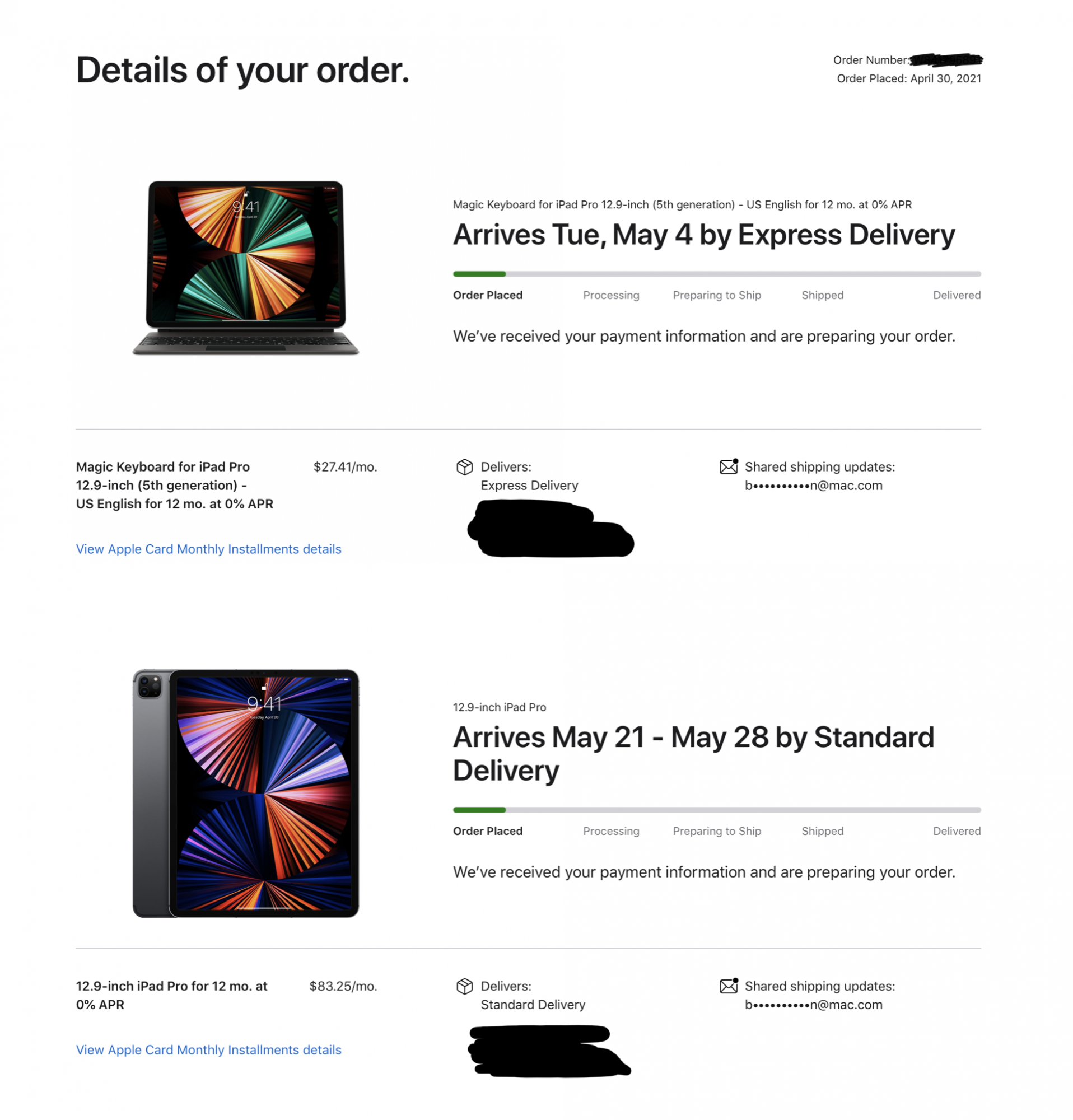 Yeah, that’s what I got too.Tried using the app and safari and couldn't get in to get it until 8:10a. Whenever I would add to the bag and go to checkout the order was missing. June 9-23 for iPad Pro 12.9 1TB cellular.. smdh