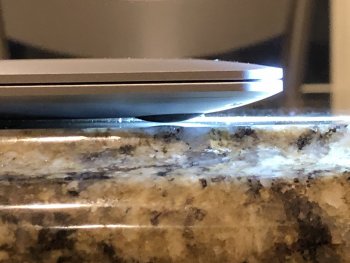 Yes this is the i5/8GB model with 512GB SSD. Here's a pic with the MacBook on my kitchen countertop. There is enough of a gap to make it rattle every time I place my right wrist on that corner. Unfortunately I waited about three weeks for Costco to ship it but it will be going back, for multiple reasons. In addition to this issue, I am very surprised at how "dim" the screen is even at full brightness. Plus the battery life is pretty disappointing. With only Safari running, I am getting only about 8 hours of life out of it and there is no indexing going on. I am running Wipr to block ads and have turned Location Services off. Lastly it is disappointing to hear the fan softly running in the background as I never heard it at all with my 2015 MBA while running the same apps.