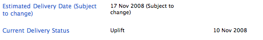 I'm aware I probably won't receive any useful tracking info until it's almost delivered, but I'm wondering how accurate the estimated delivery date of the 17th is and whether anyone knows the steps in the chain between "uplift" and delivery.