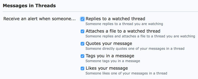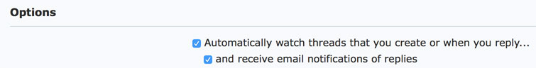 Preferences allows you to specify when you Watch a thread and if you get emails