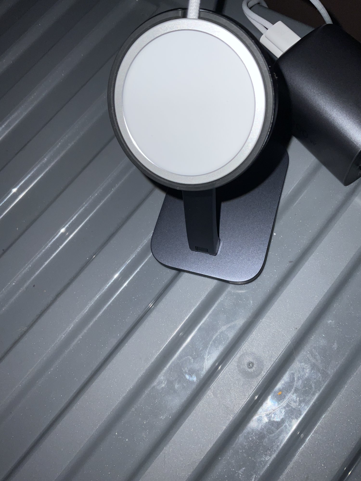 Yeah, I have a similar stand for the Apple Watch in matching greyLooks nice. Too bad it does not have any space to charge the Apple Watch too though.